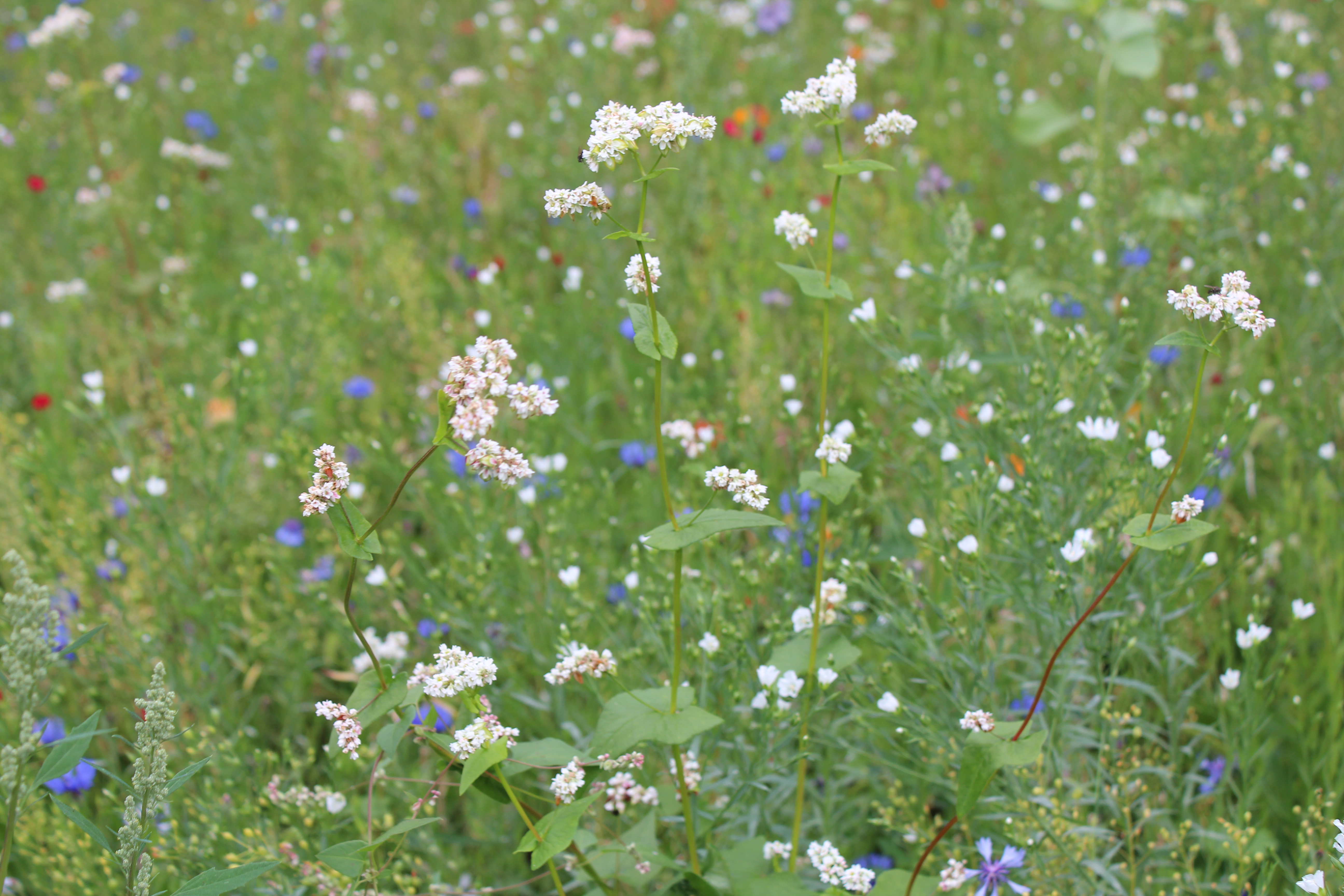 Auf den Magdeburger Blühwiesen wurde eine auf die Standortbedingungen abgestimmte Saatgutmischung ausgebracht. Diese mehrjährige Mischung enthält unter anderem Ringelblumen, Schafgarbe, Wilde Möhre, Storchschnabel, Johanniskraut, Mohn, verschiedene Königskerzen, Natternkopf, Rainfarn, Buchweizen, Pastinaken, Echter Dost sowie Salvien und beinhaltet damit Pflanzen, die mit ihren Blüheigenschaften besonders bienenfreundlich sind.