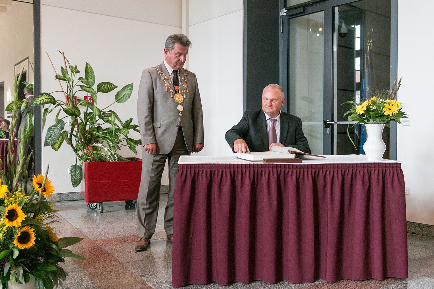 Gerhard Unger und die Gäste wurden durch den Oberbürgermeister Dr. Lutz Trümper in der Ratsdiele des Alten Rathauses empfangen. Neben zahlreichen Freunden, Begleitern und Mitstreitern Gerhard Ungers ließen es sich zahlreiche Persönlichkeiten der Stadt nicht nehmen, dem Geehrten persönlich zu danken. Die emotionale Laudatio durch Prof. Dr. Rüdiger Bähr von der Fakultät für Maschinenbau bekräftigte die Wertstellung des Geehrten und die Wertschätzung seiner Arbeit für Kultur in Magdeburg. Auch der Vorsitzende des Stadtrates Michael Hoffmann ließ es sich nicht nehmen in einer Rede persönlich Gerhard Unger zu danken. Zu den weiteren Gästen zählten auch die Beigeordneten Simone Borris, Rainer Nitsche und Dr. Dieter Scheidemann sowie Ehrenbotschafter, Ehrenstadträte und Ehrenringträger der Stadt.