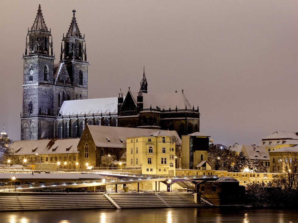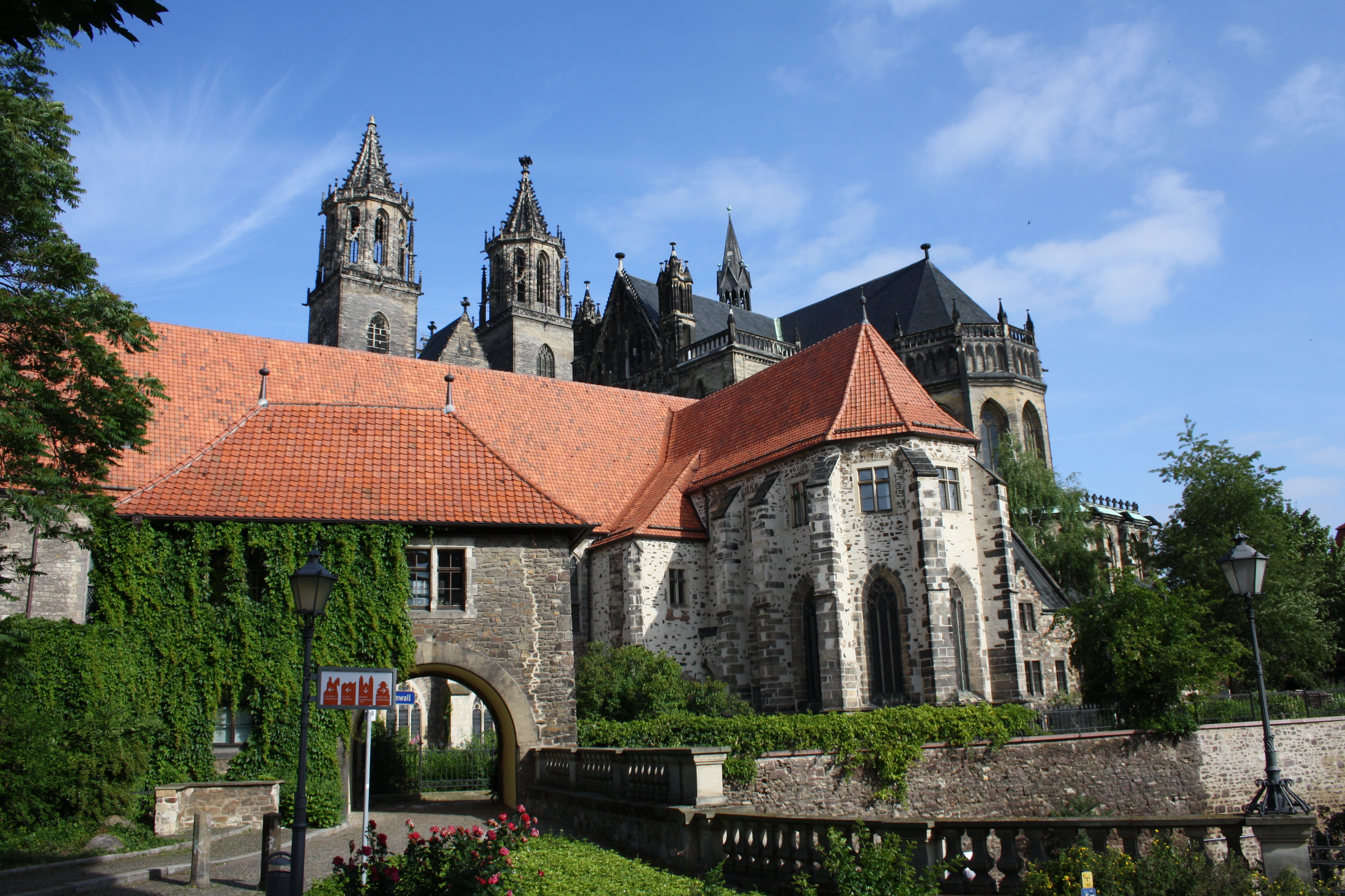 Nach dem Tod Kaiser Ottos 973 in Memleben (120 km süd-westlich von Magdeburg) erfolgte die Beisetzung in einem Steinsarkophag in seinem Dom in Magdeburg. Im Jahr 1207 wurde der ottonische Dom bei einem Stadtbrand sehr stark zerstört. Erzbischof Albrecht II. entschied für seine Kirchengemeinde einen modernen Neubau errichten zu lassen, der bereits zwei Jahre später begann und der eine bedeutende Sehenswürdigkeit werden sollte. 1363 erfolgte schließlich die Weihe des Sakralbaus. Die 101 Meter hohen Westtürme wurden im Jahr 1520 fertiggestellt.