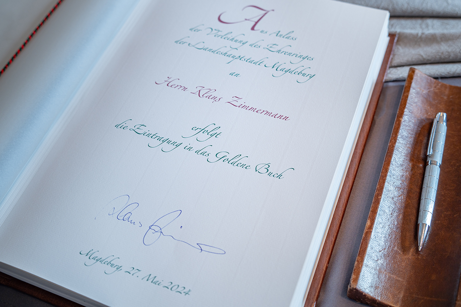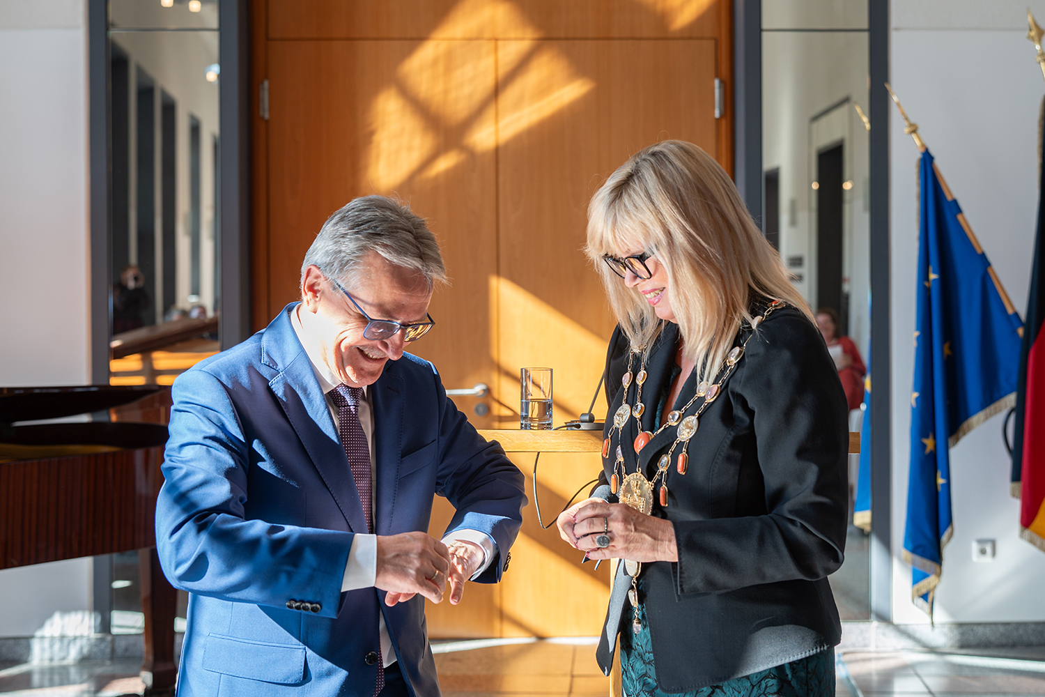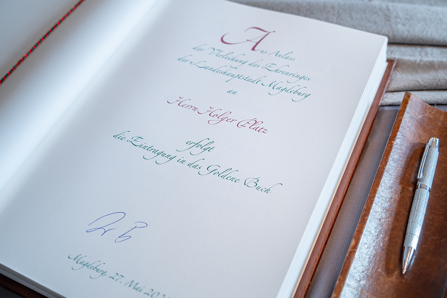 „Mit der Verleihung des Ehrenringes wird den beiden ehemaligen Beigeordneten und langjährigen Wegbereitern der Magdeburger Stadtverwaltung unsere ganz besondere Wertschätzung zuteil. In dieser Auszeichnung findet ihr langjähriges Wirken und Engagement für die Landeshauptstadt Anerkennung und Würdigung durch die Magdeburger Stadtgesellschaft“, bekräftigte Oberbürgermeisterin Simone Borris den Entschluss des Stadtrates zur Ehrung der beiden Persönlichkeiten.