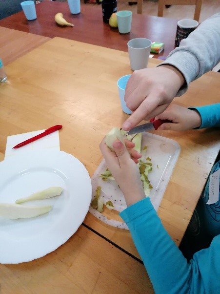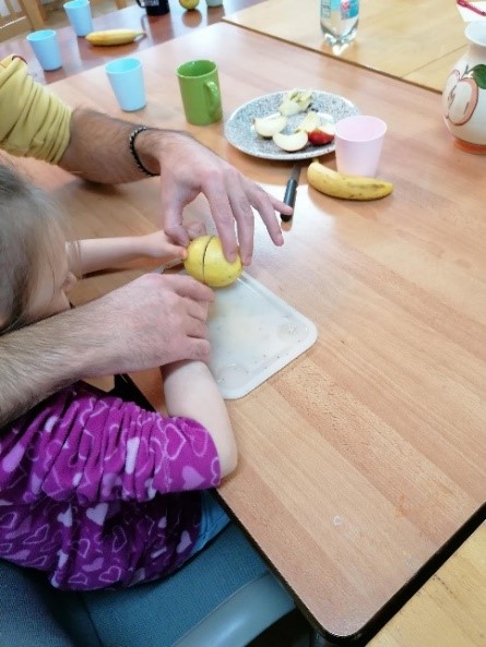 Die Eltern lernten zusammen mit ihren Kindern, wie sie diese auch zuhause und außerhalb des Kita-Alltags aktiv auf die Schulzeit vorbereiten können. Neben kleinen Vorschulübungen wurden Fördermöglichkeiten zu Entwicklungspotentialen in den Bereichen der Wahrnehmung, der Grob- und Feinmotorik, der Konzentration, der Ausdauer und des Selbstbewusstseins aktiv mit den Eltern und Kindern bearbeitet (u.a. Obst und Gemüse schneiden, Tisch decken und abräumen, abwaschen, Geschirr wegräumen, Wäsche aufhängen, schneiden mit einer Schere, aufkleben nach Vorlagen, ...). Viele Tätigkeiten, die die Eltern in den kommenden Wochen und Monaten mit ihren Kindern auch zuhause üben und diese somit aktiv auf die Schule vorbereiten können.