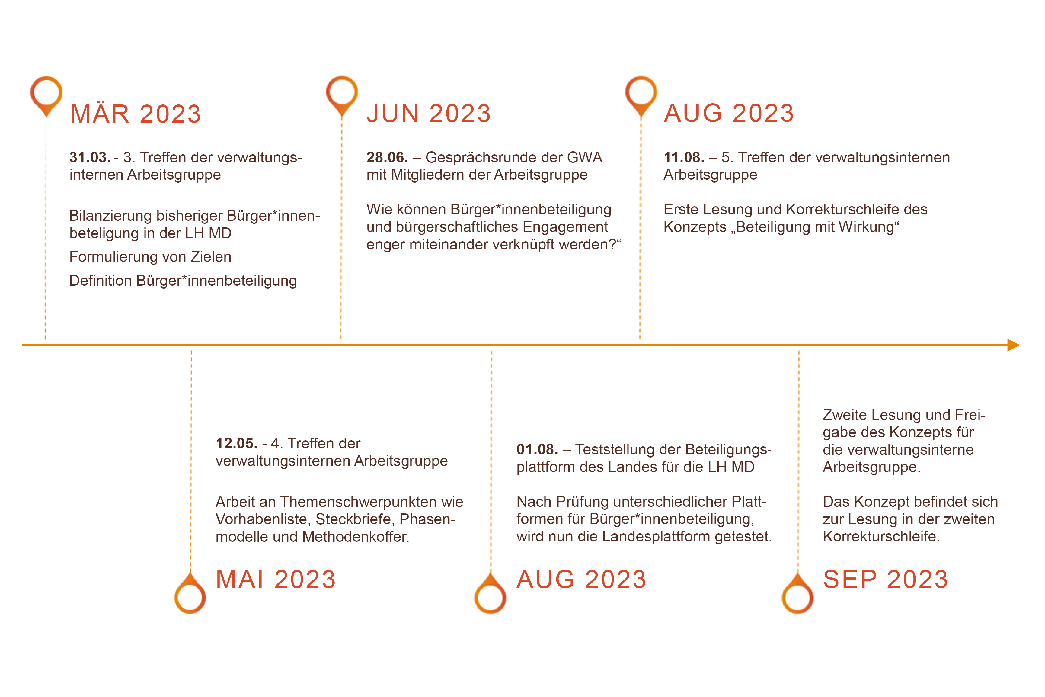 Wege zur Beteiligung: Zeitstrahl März 2023 bis September 2023