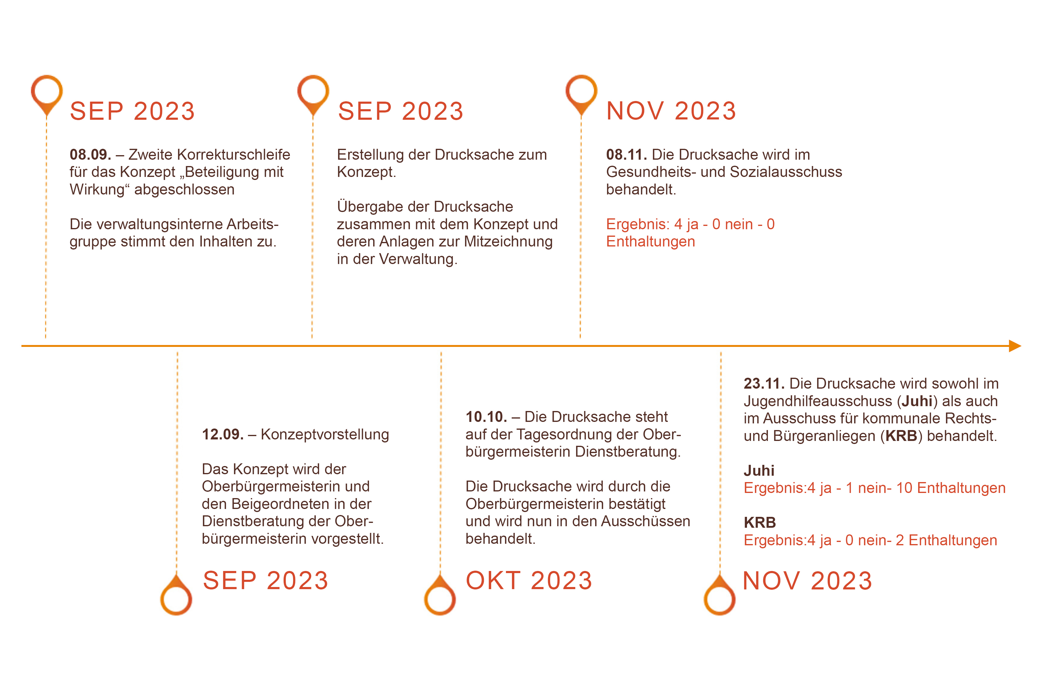 Wege zur Beteiligung: Zeitstrahl September 2023 bis November 2023