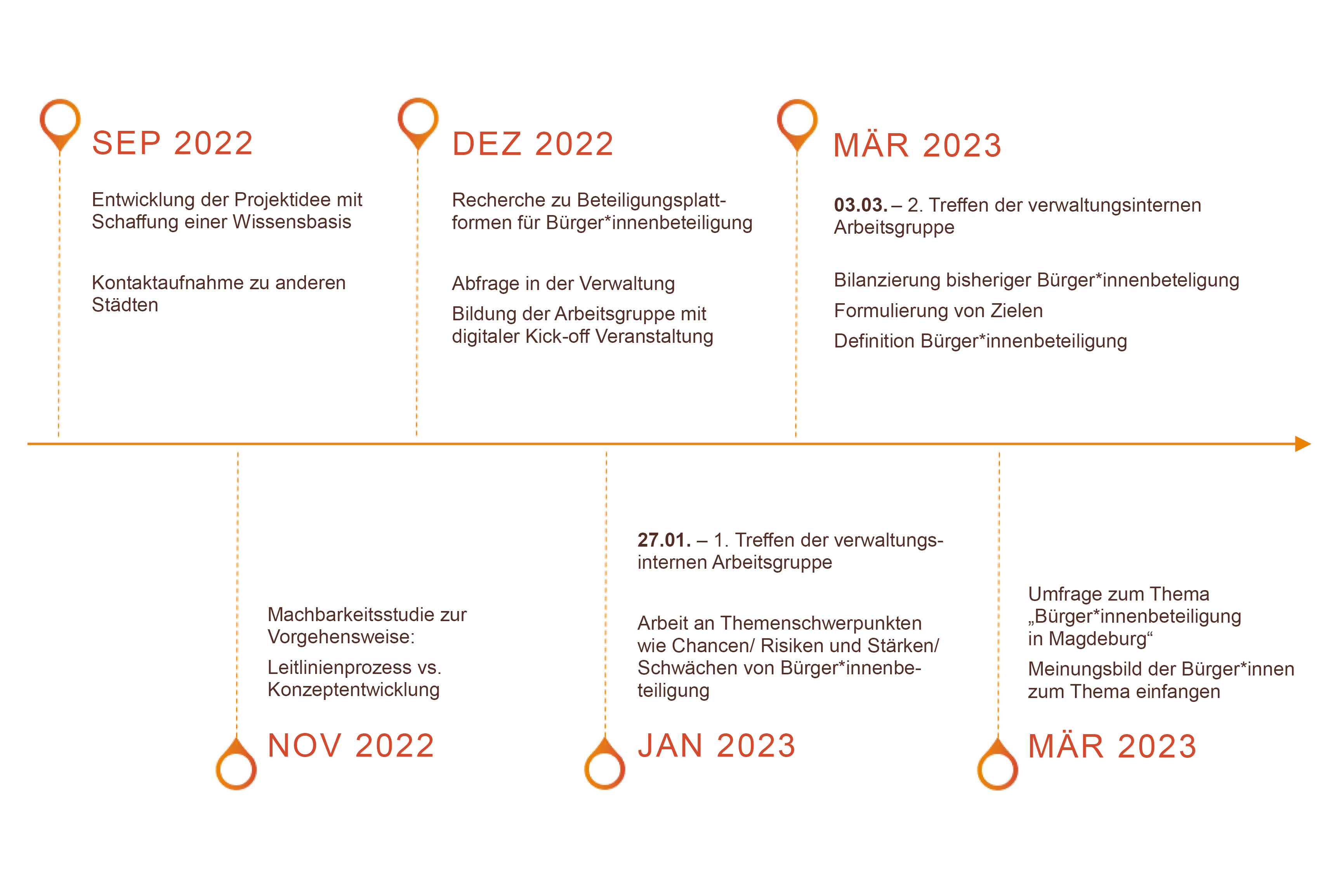 Wege zur Beteiligung: Zeitstrahl September 2022 bis März 2023