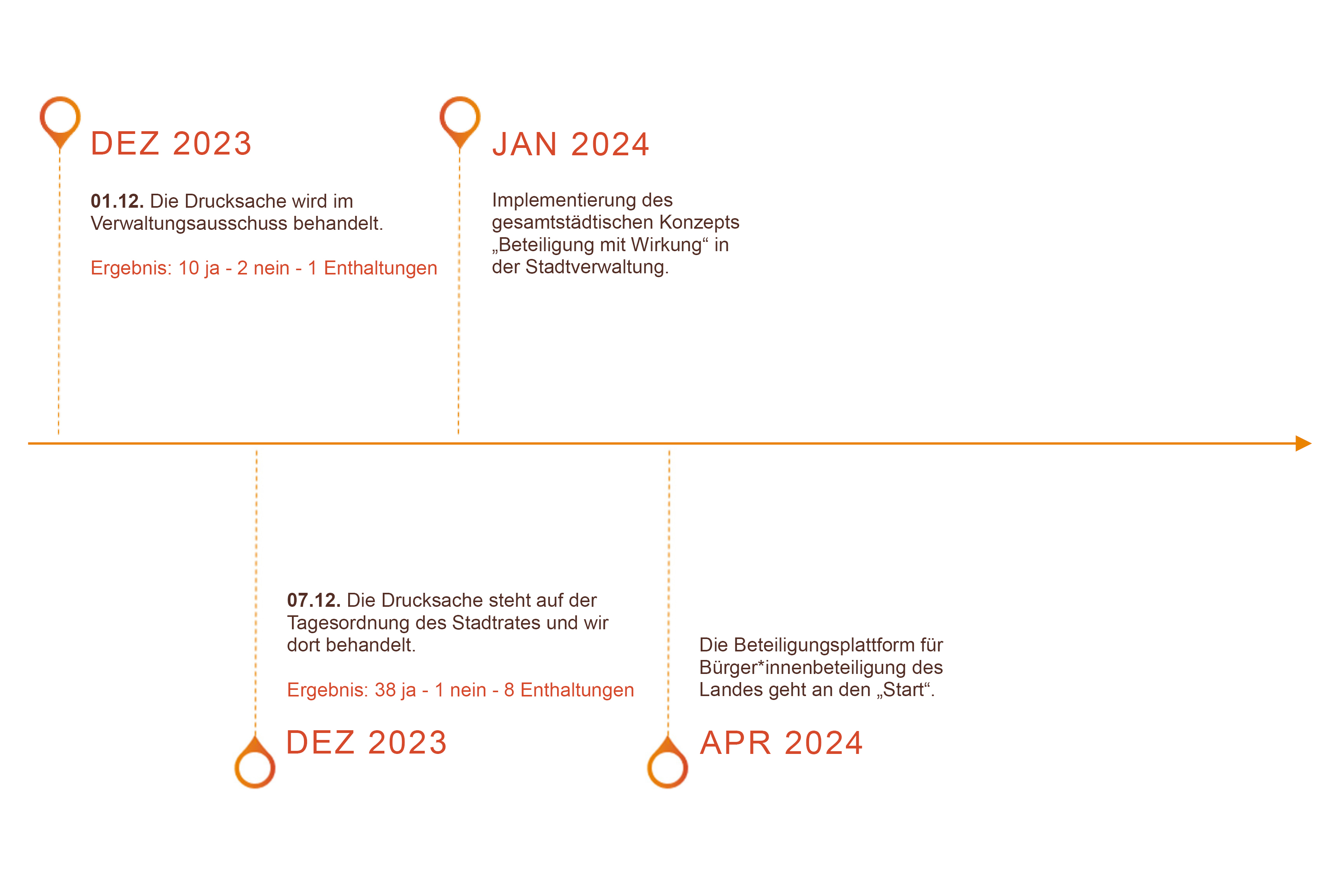 Wege zur Beteiligung: Zeitstrahl Dezember 2023 bis April 2024