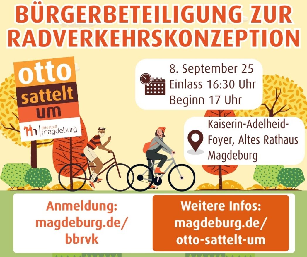 Die Aufstellung der Radverkehrskonzeption für die Landeshauptstadt Magdeburg wird durch das Ministerium für Infrastruktur und Digitales des Landes Sachsen-Anhalt aus dem Programm Sachsen-Anhalt Regio gefördert. Weiterführende Informationen zur Radverkehrskonzeption sind online unter www.magdeburg.de/Radverkehrskonzeption einsehbar.