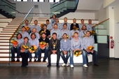 als Medaillengewinner und Mitglieder ihrer Nationalteams