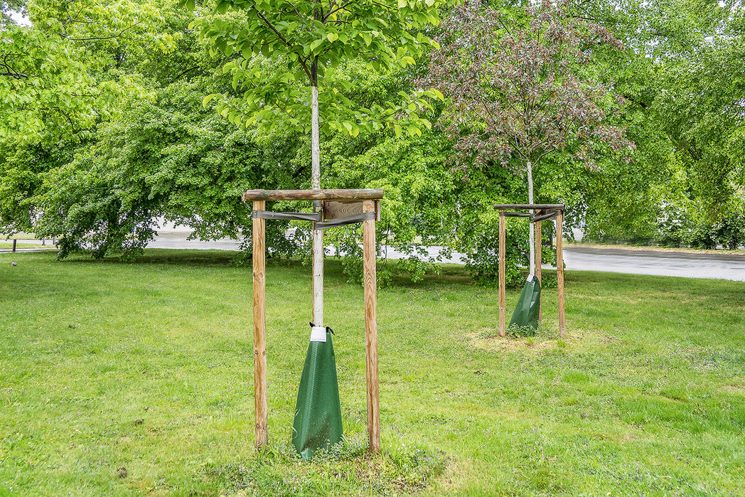 Auch durch den Eigenbetrieb beauftragte Pflegefirmen unterstützen bei dieser wichtigen Aufgabe. Ziel ist es, den Jungbäumen in den Sommermonaten etwa alle zwei Wochen zwischen 60 und 100 Liter zusätzliches Wasser zur Verfügung zu stellen.