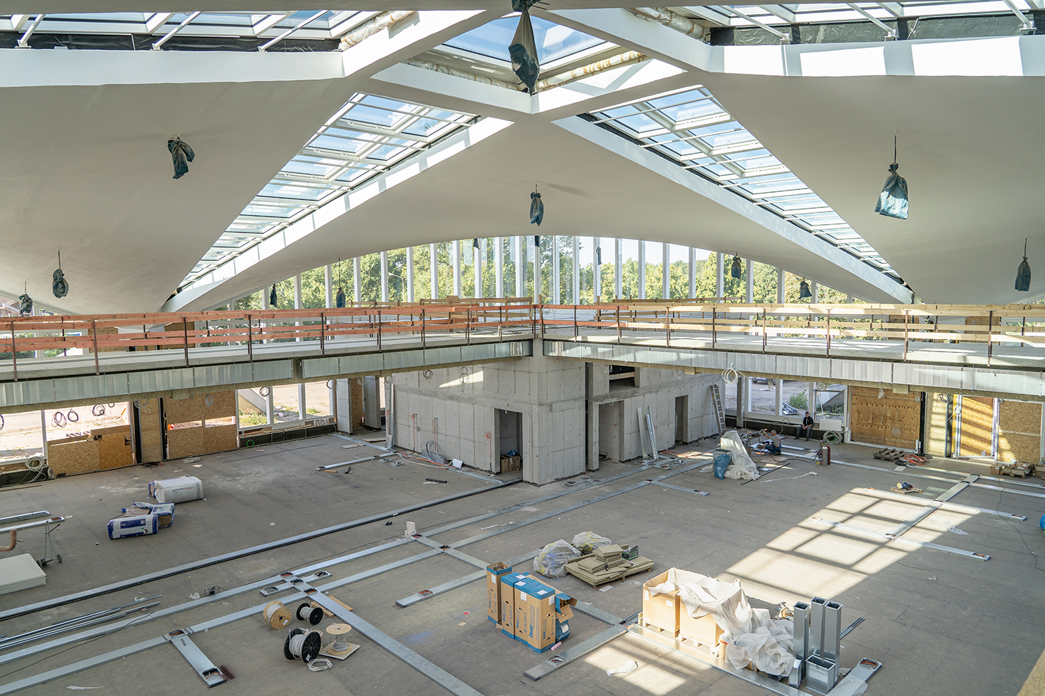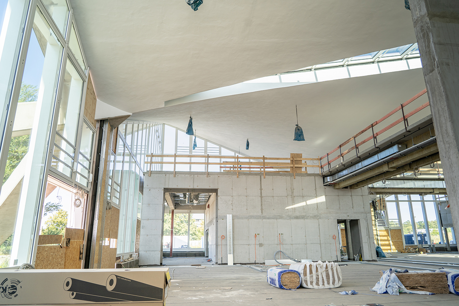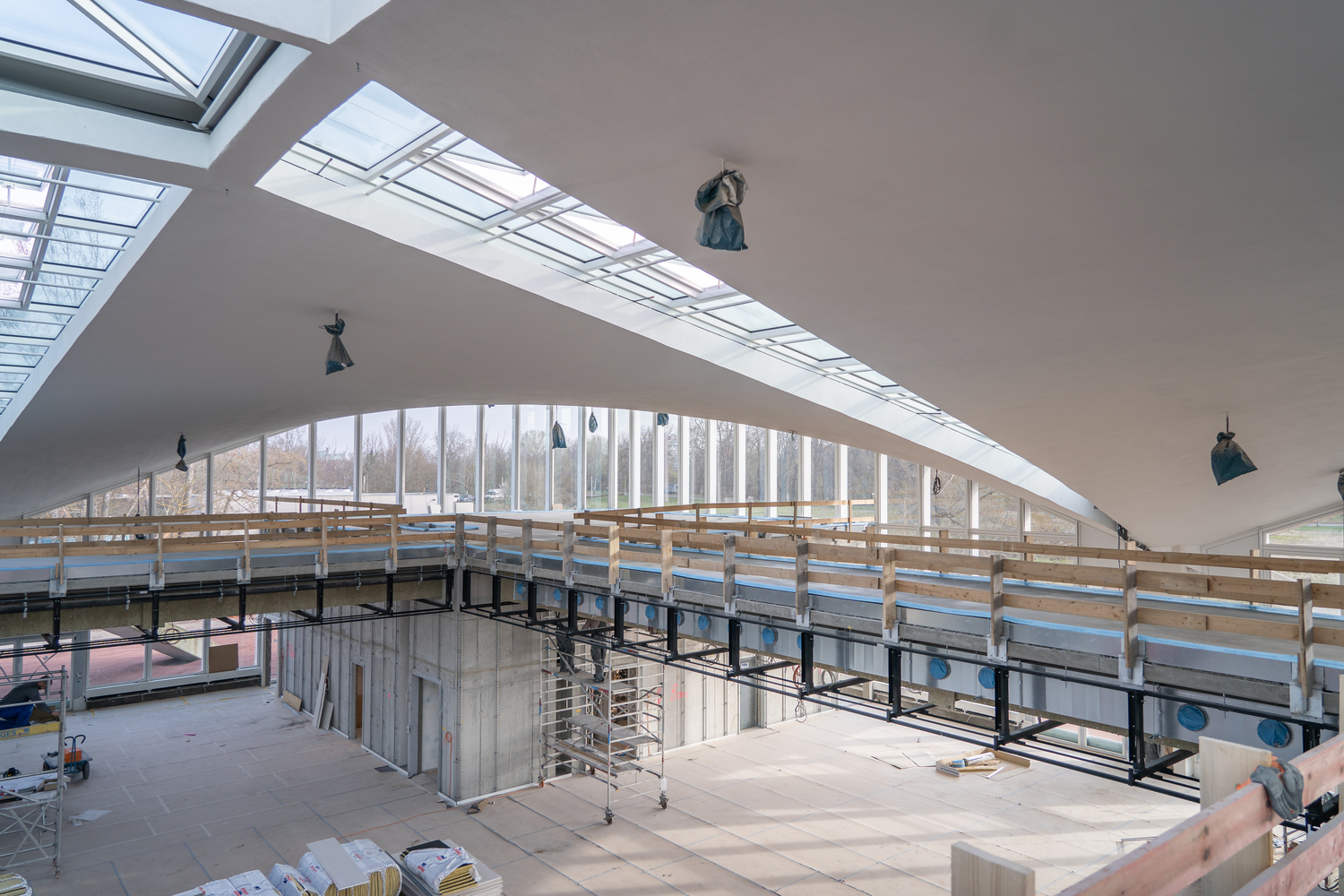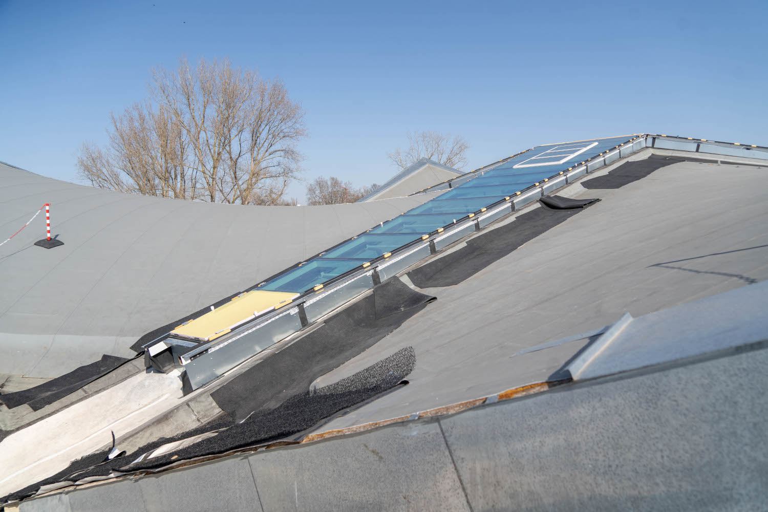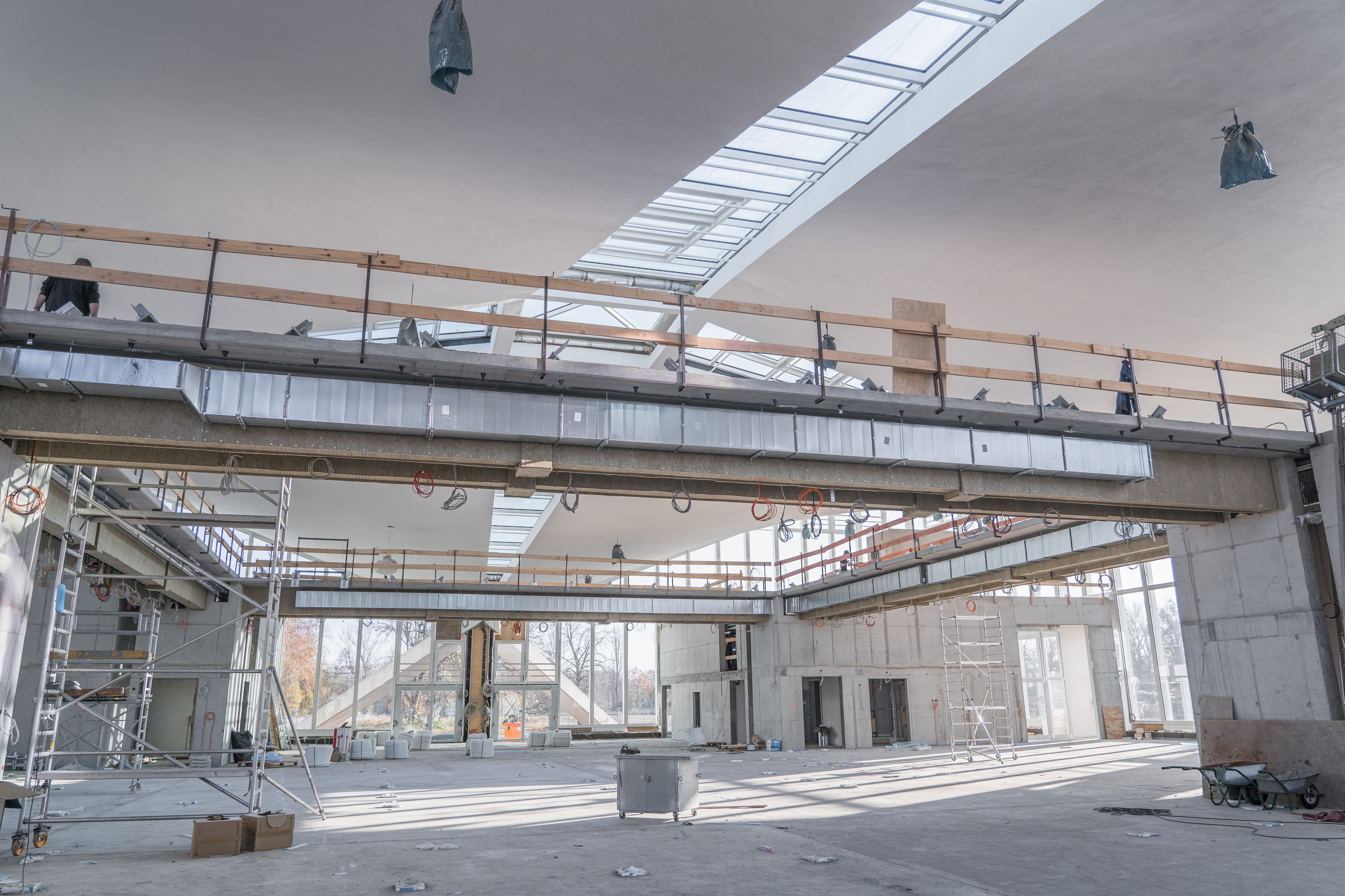 Einbau der Glaselemente für das Lichtband im Dach im März 2022