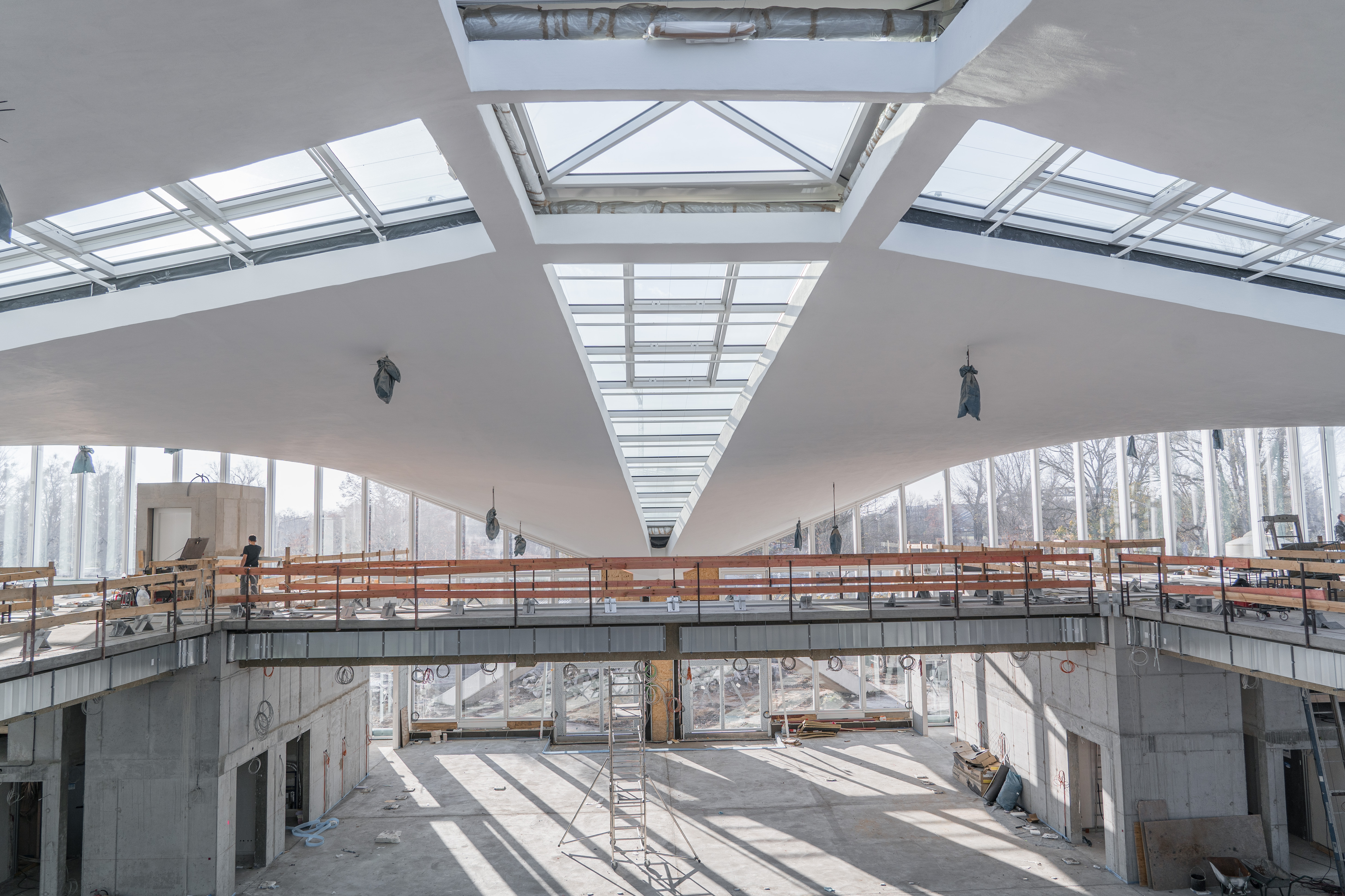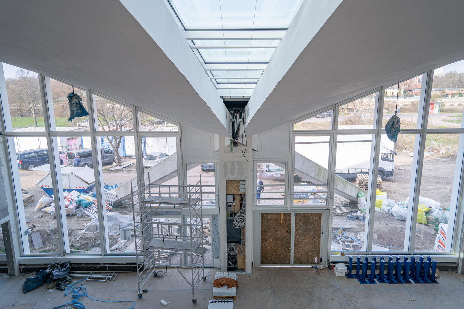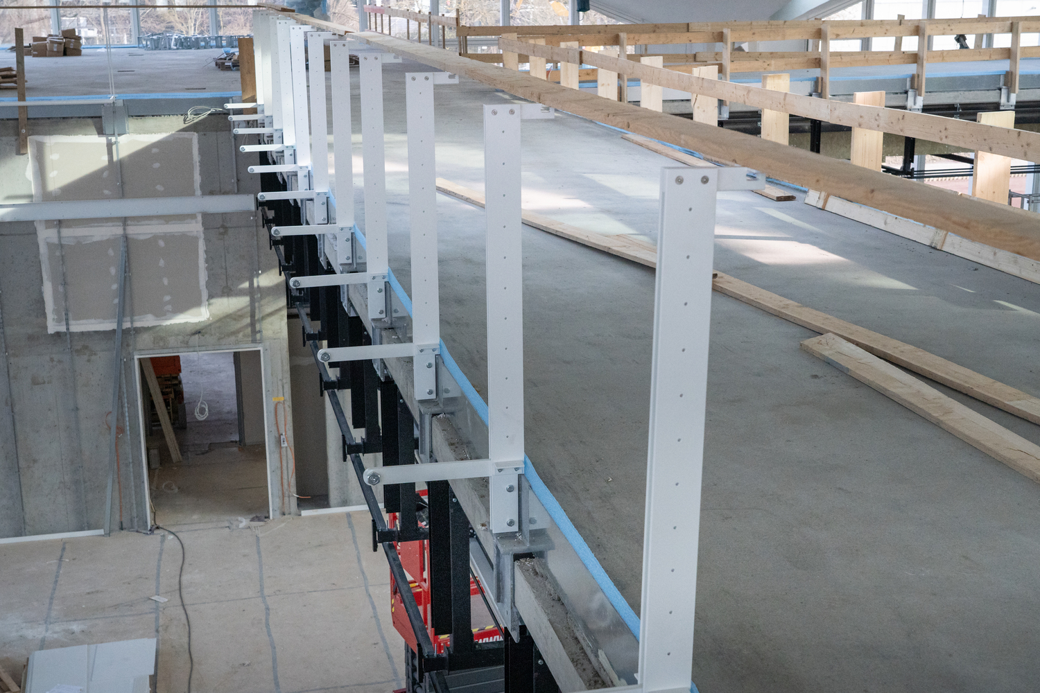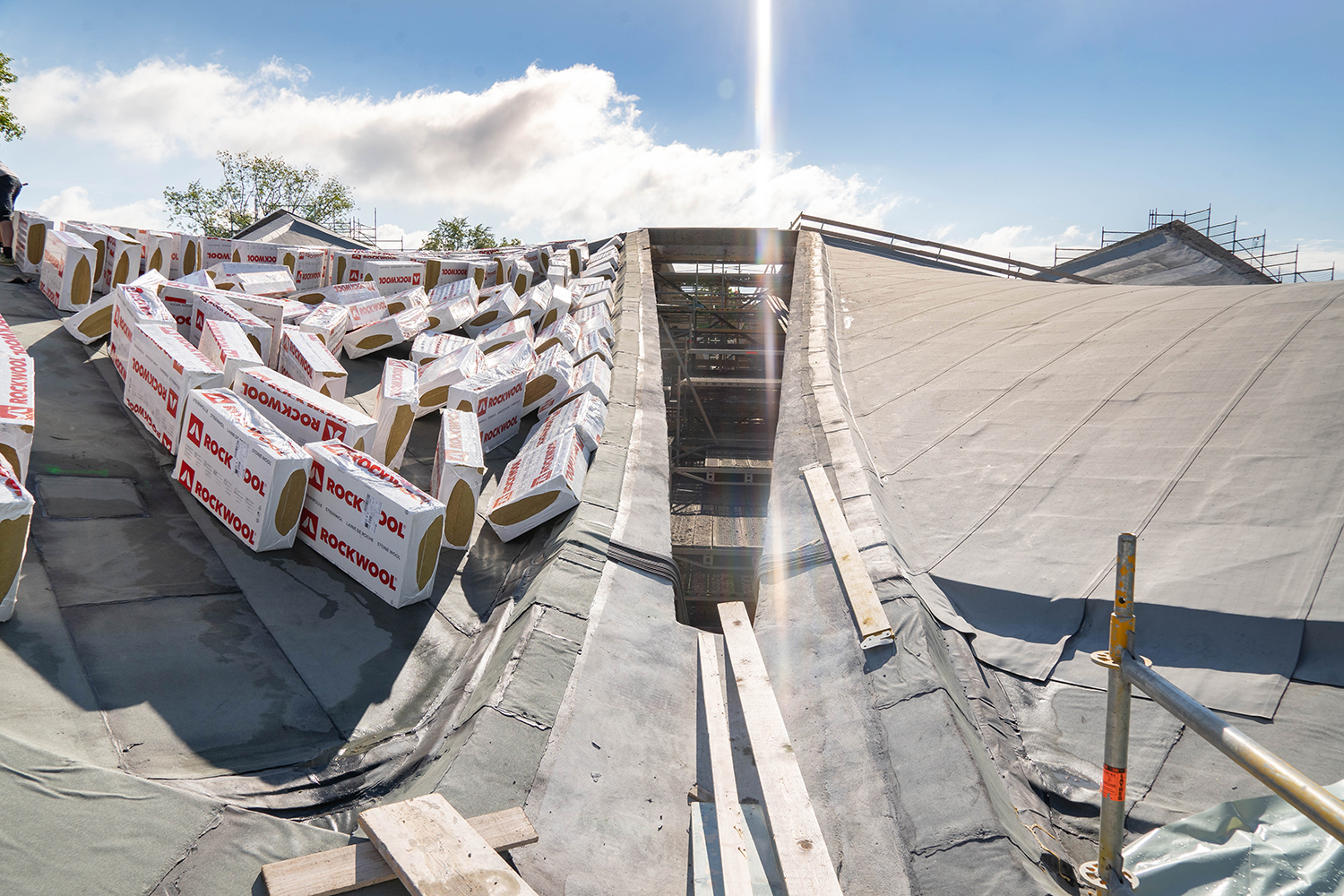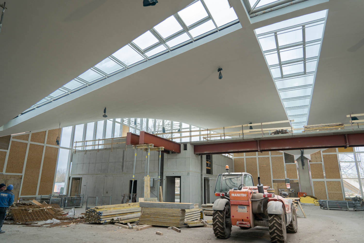 Einbau der Glaselemente für das Lichtband im Dach im März 2022