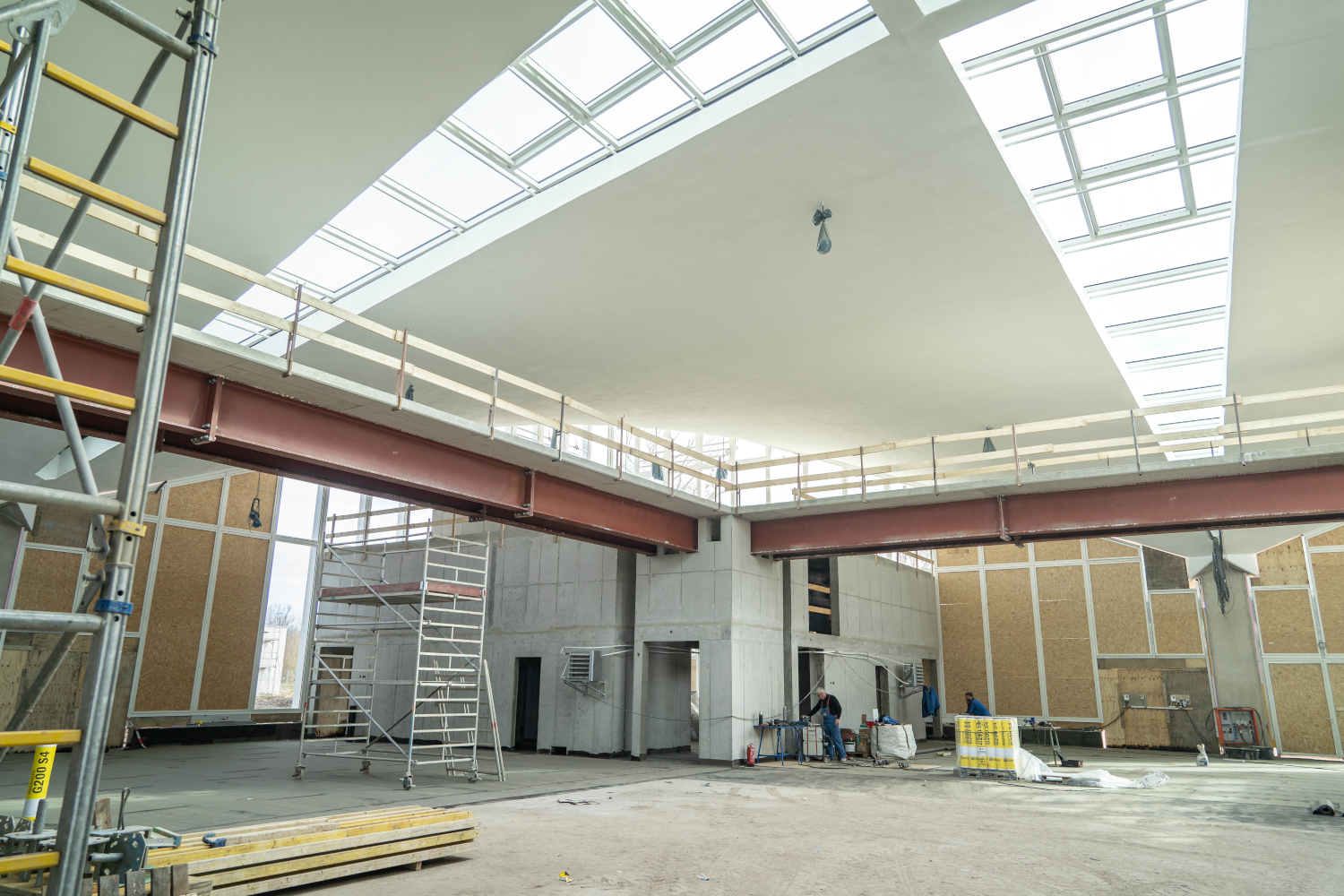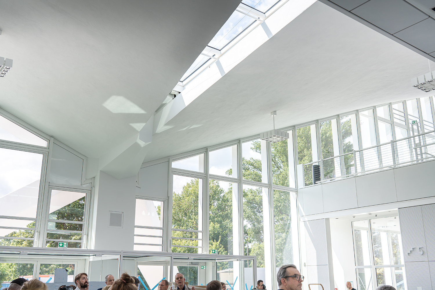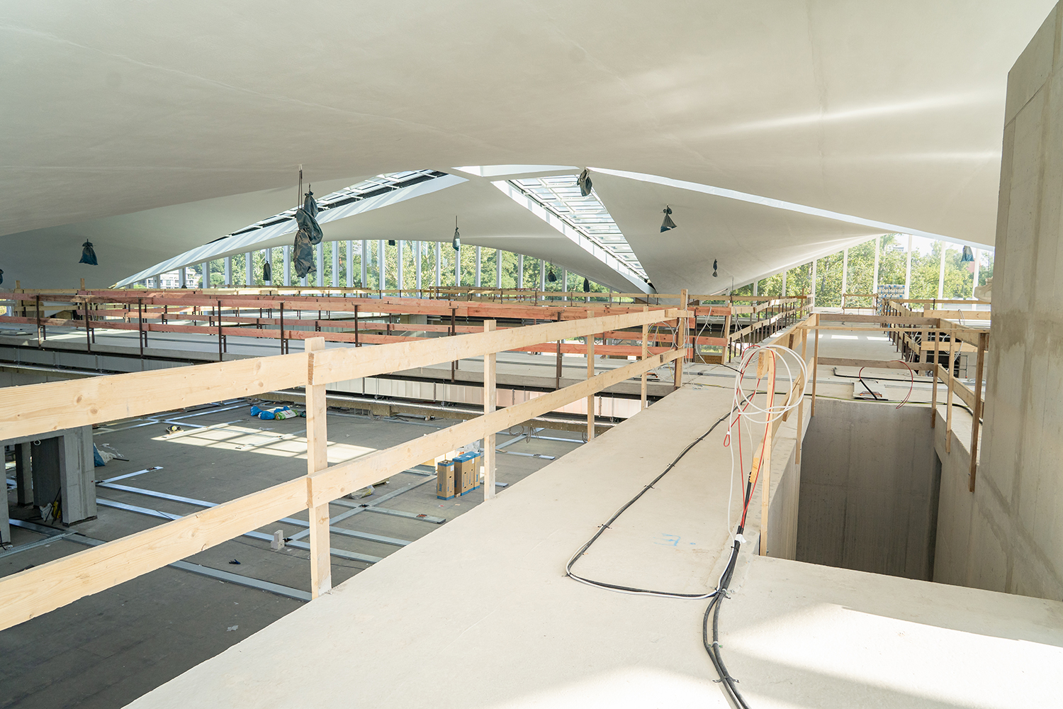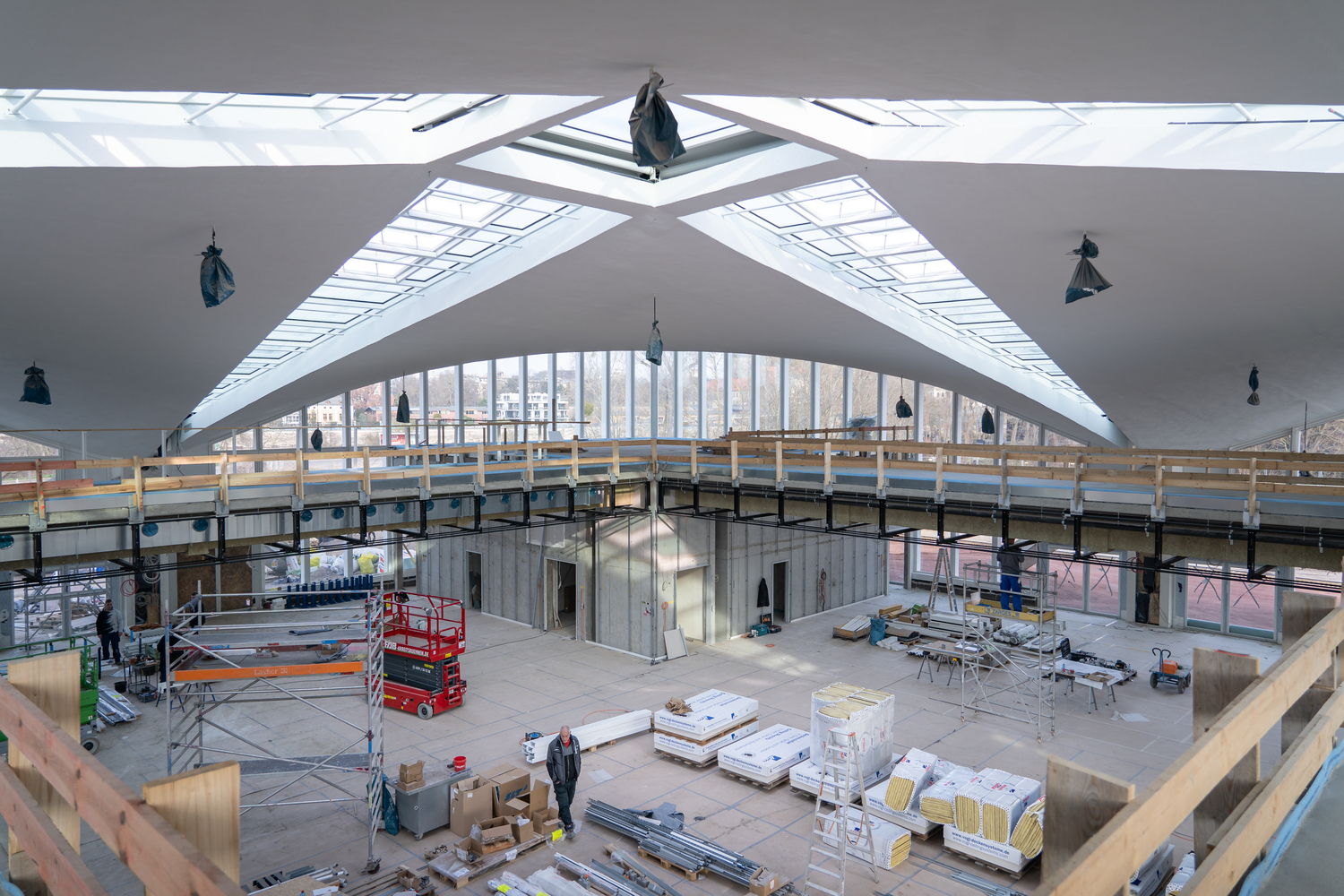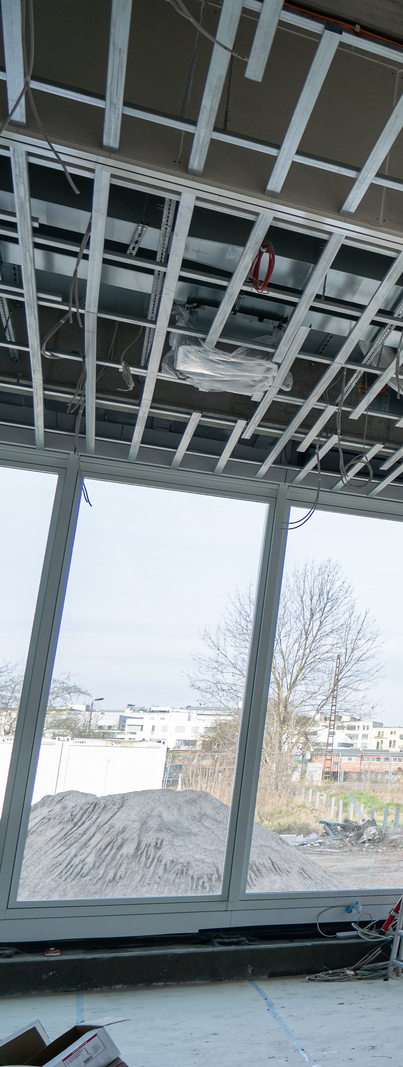 Einbau der Glaselemente für das Lichtband im Dach im März 2022