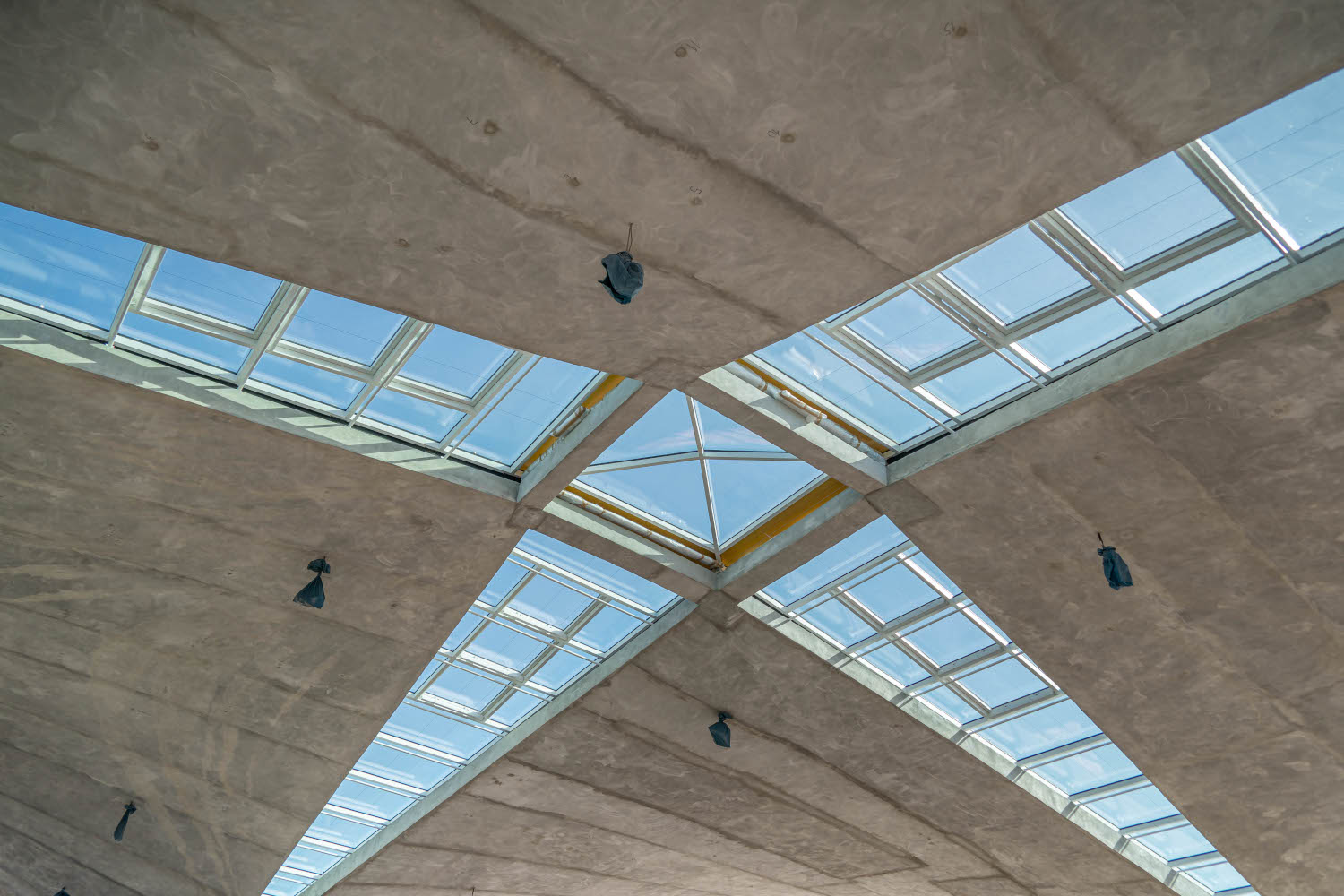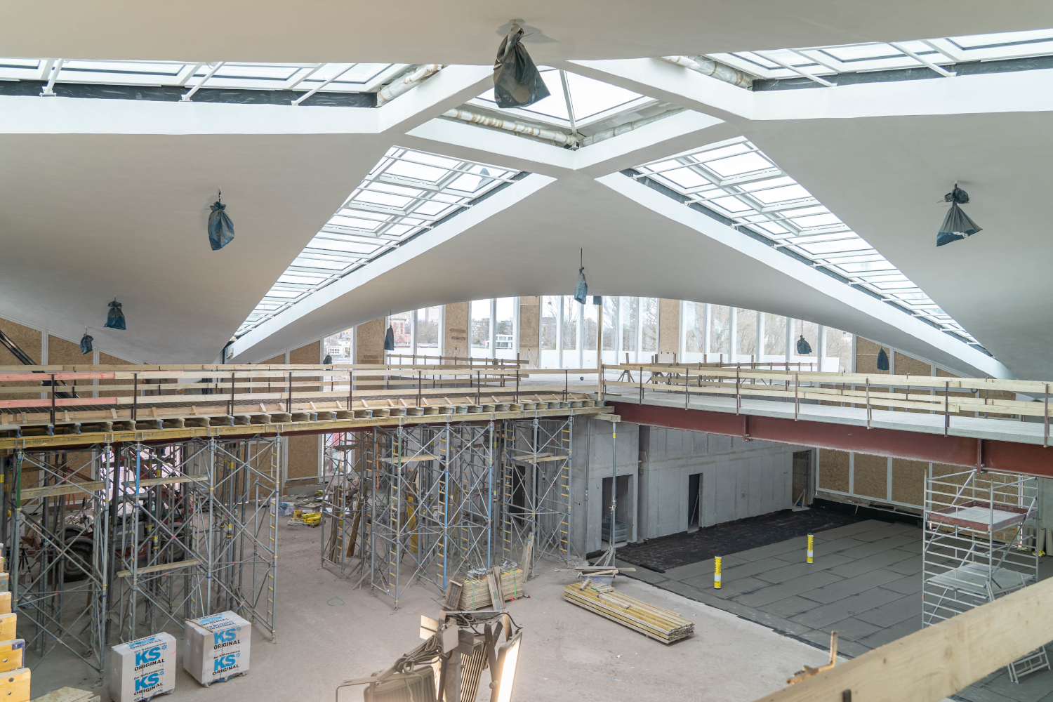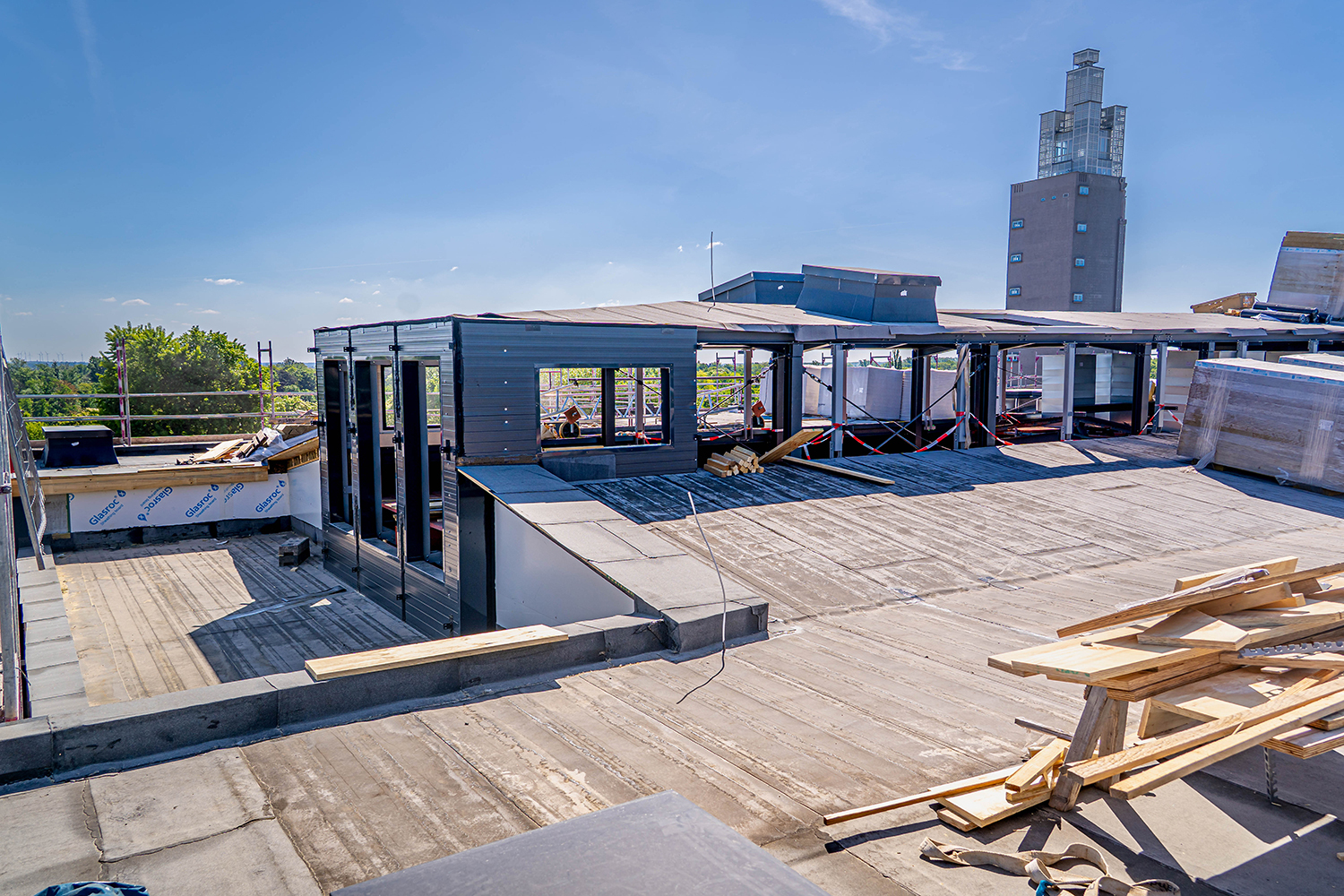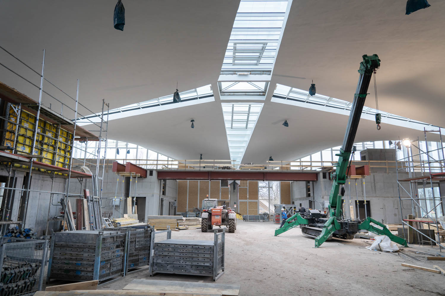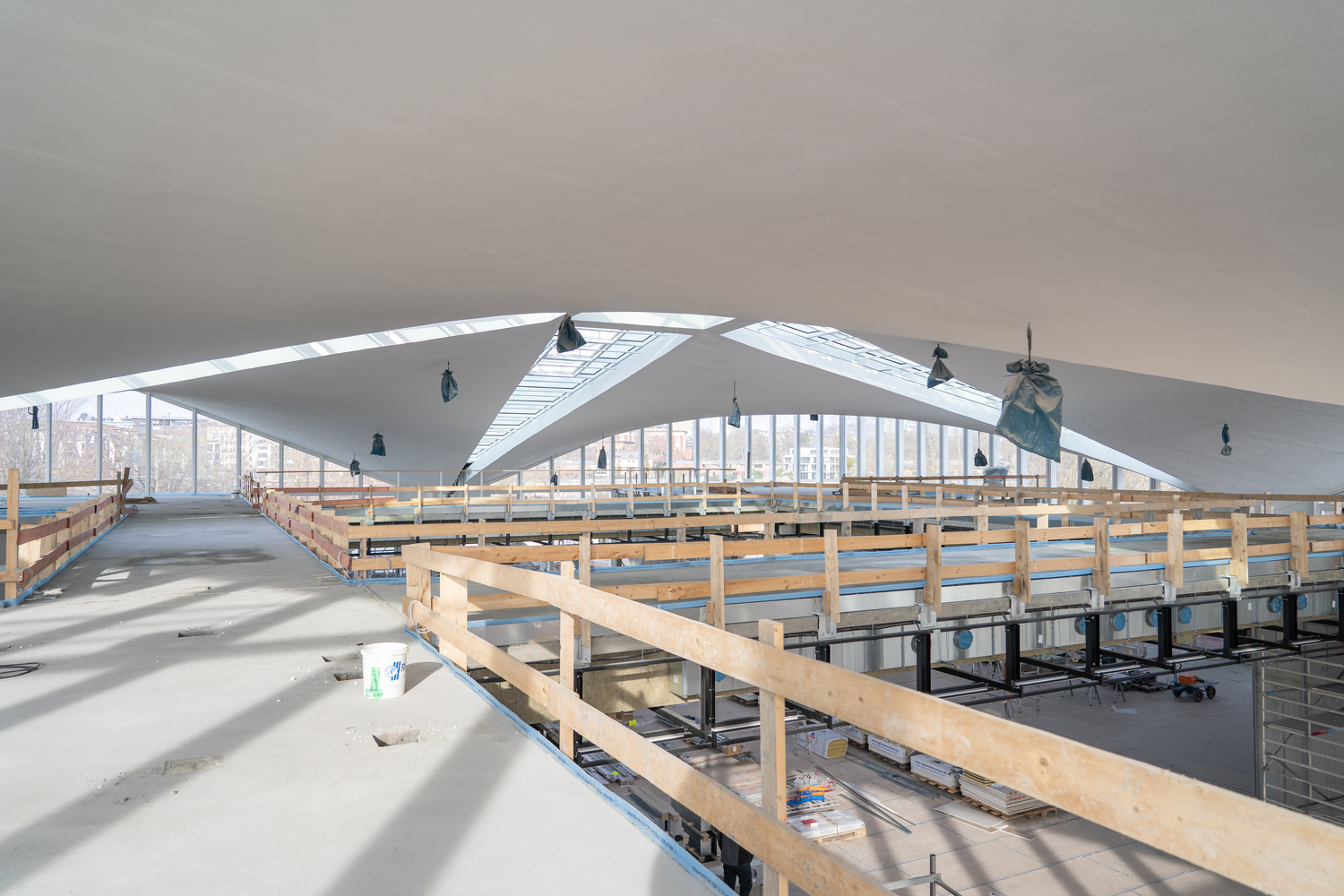 Einbau der Glaselemente für das Lichtband im Dach im März 2022