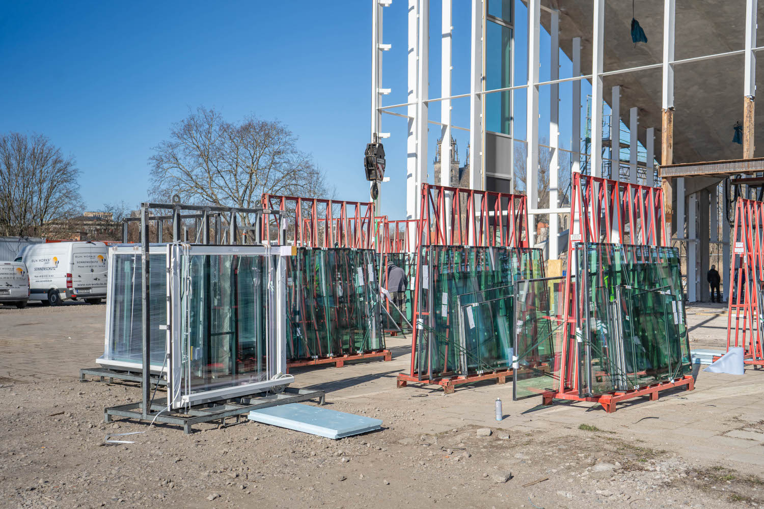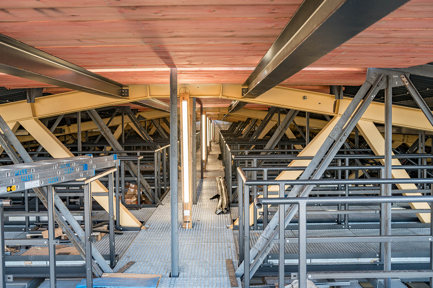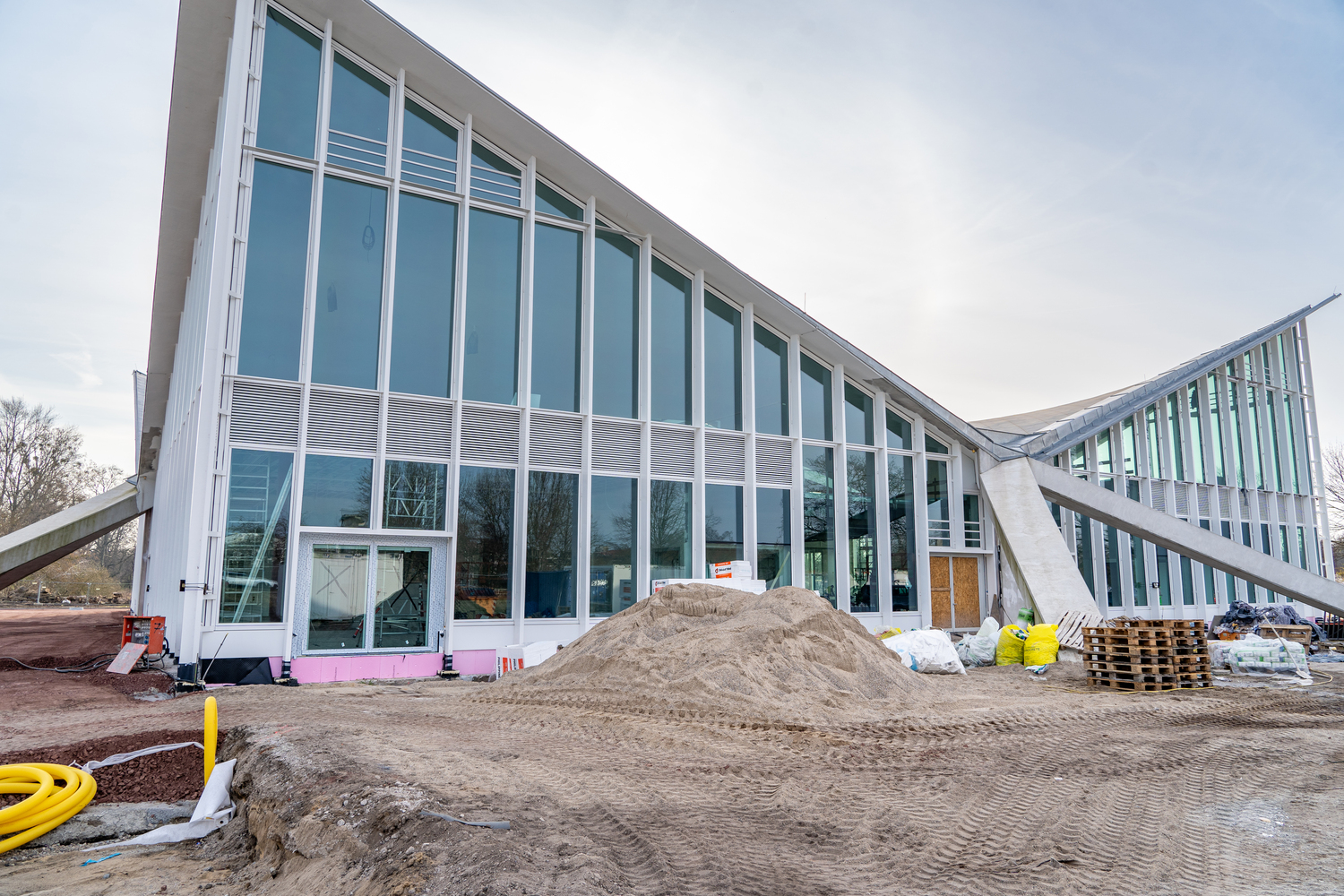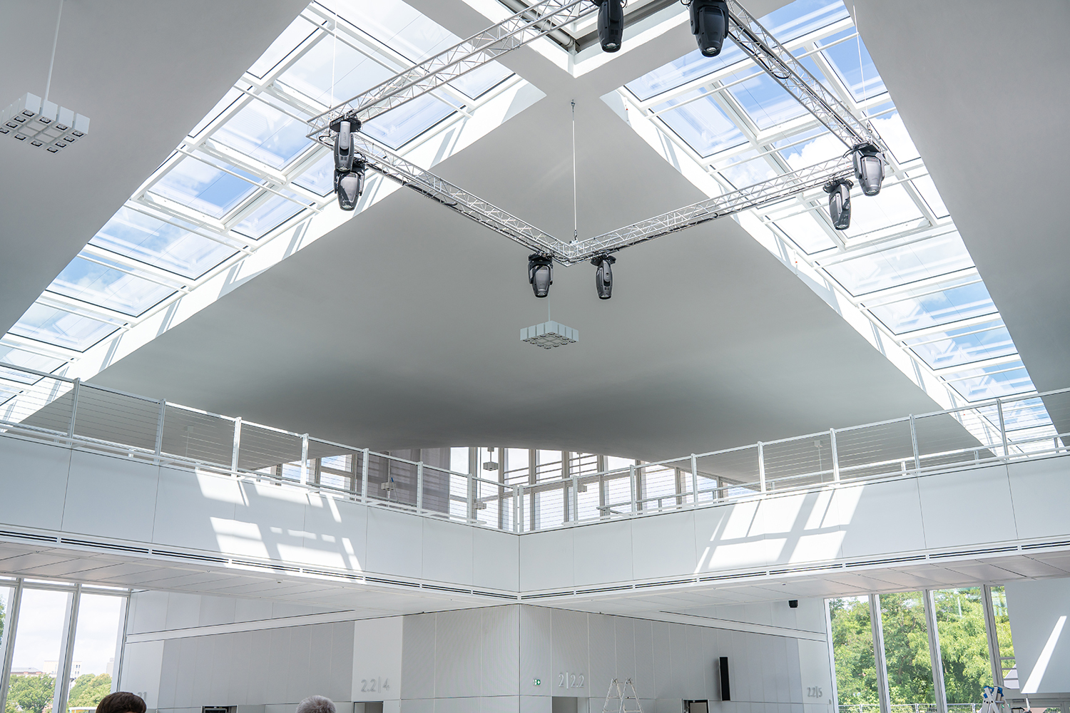Einbau der Glaselemente für das Lichtband im Dach im März 2022