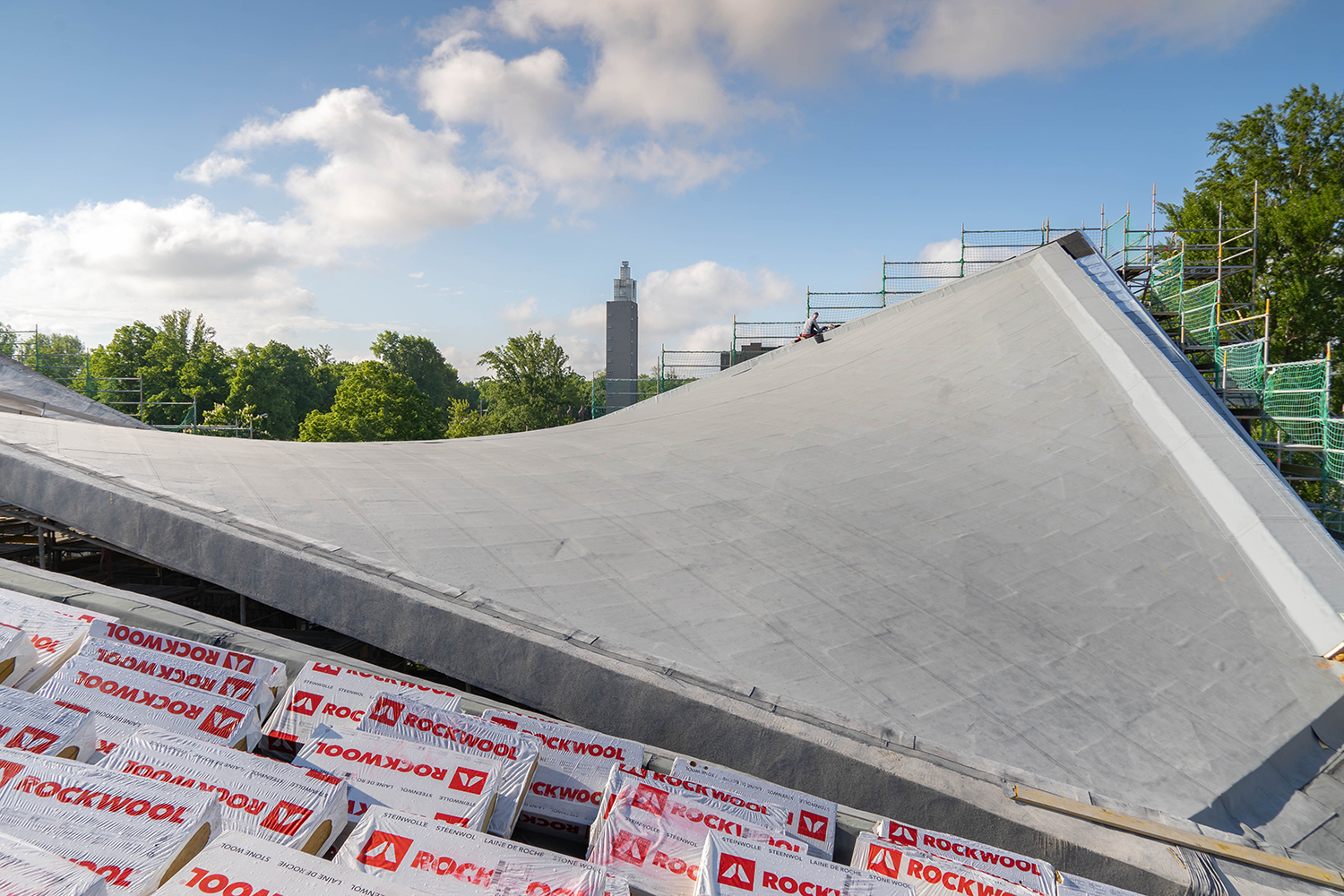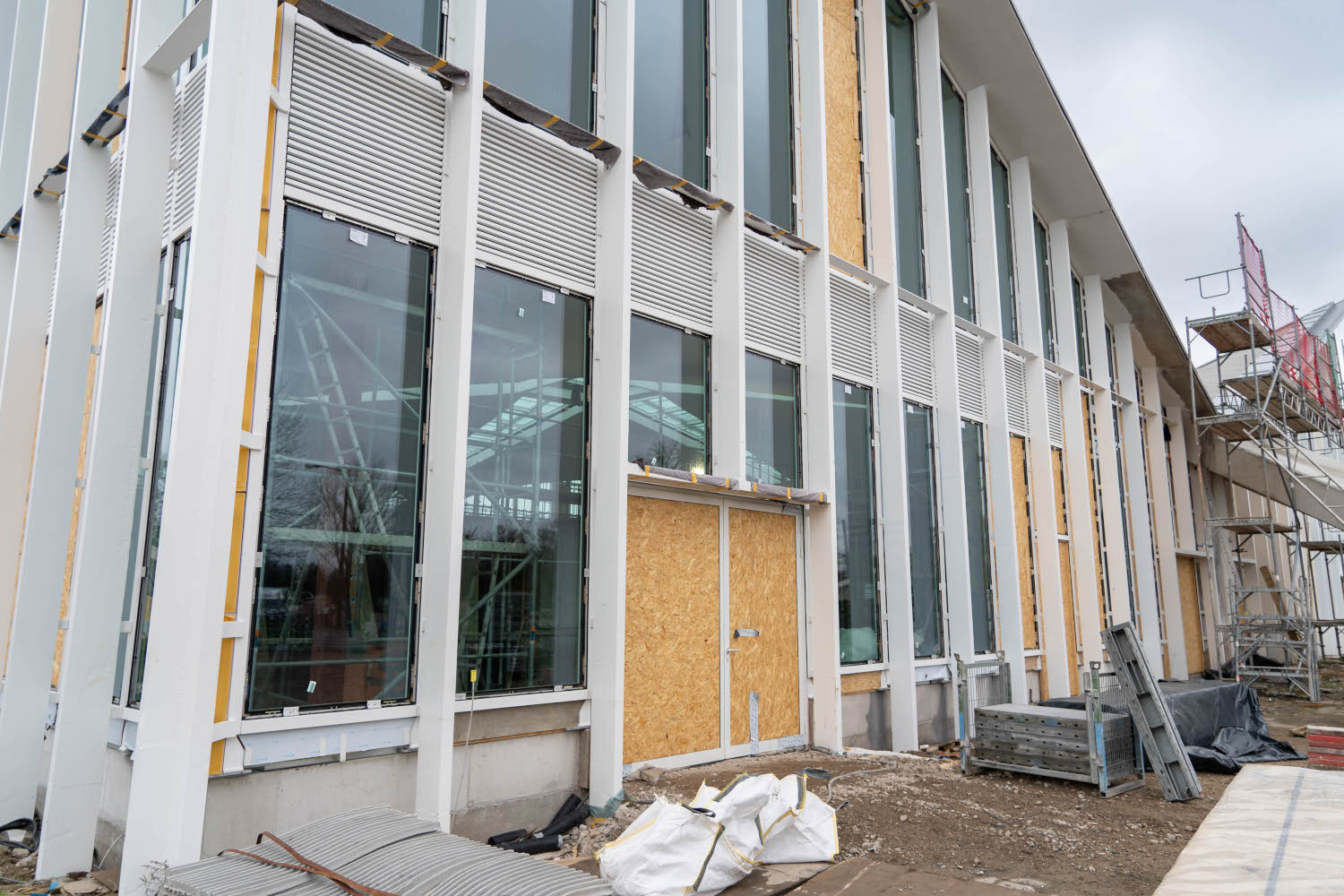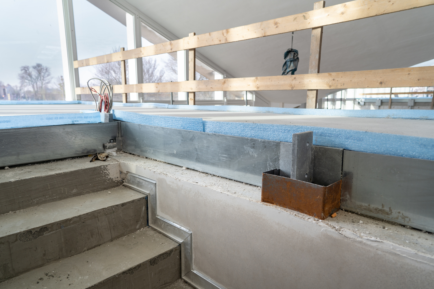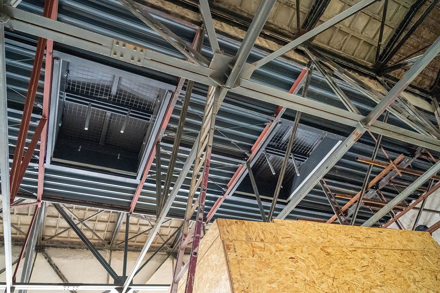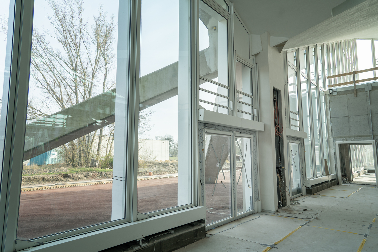 Einbau der Glaselemente für das Lichtband im Dach im März 2022
