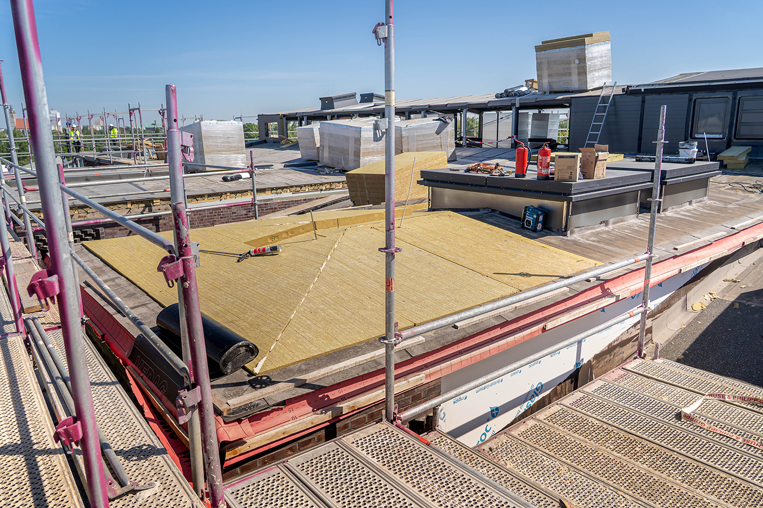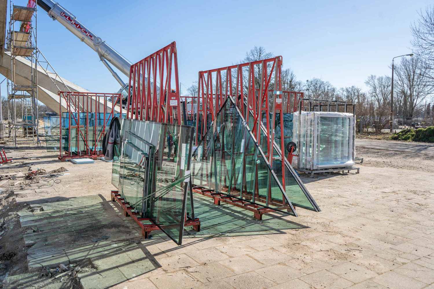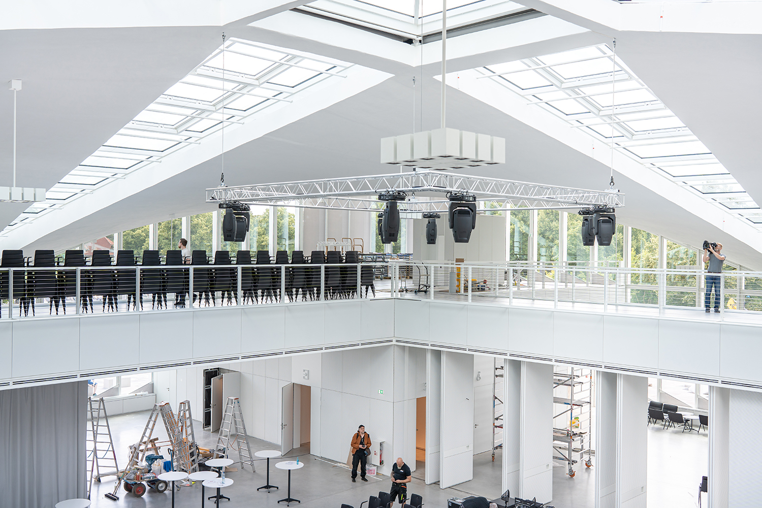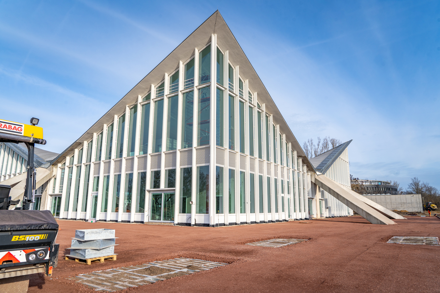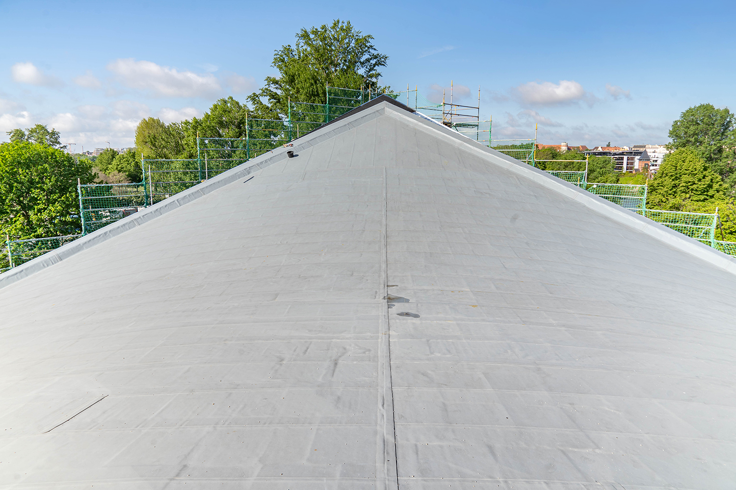 Einbau der Glaselemente für das Lichtband im Dach im März 2022